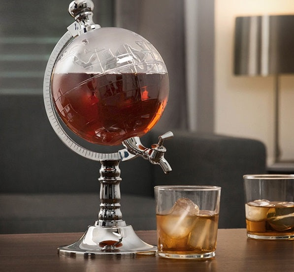 Dozator pentru bauturi in forma de Glob Pamantesc poate fi folosit pentru orice tip de bauturi,cum ar fi : whisky, bere, vin, sucuri, apa,..etc.