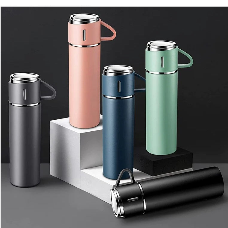 Set 3 piese: Termos 500 ml + 2 cesti, otel inoxidabil