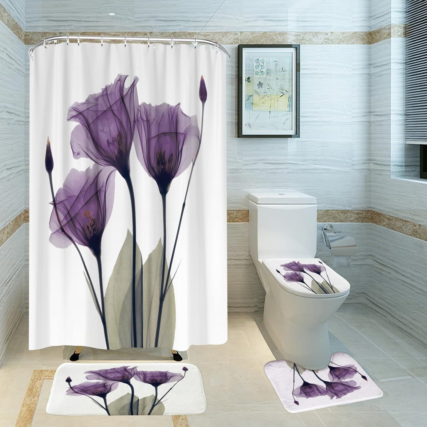 Set Pentru Baie: Perdea, Covorase Si Husa De Toaleta - Cale Mov